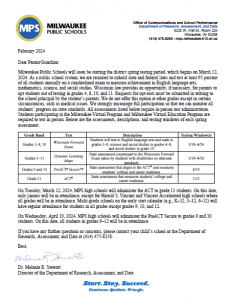 Spring Testing Letter 2024