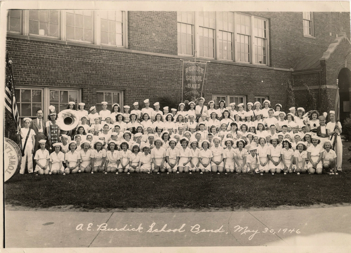 Burdick School’s numerous music awards fill one of its walls. The music department was founded in 1930 by Anthony Erickson, and parents organized the band parents’ club. Erickson left Burdick in 1948 to become Milwaukee County’s first supervisor of Music.