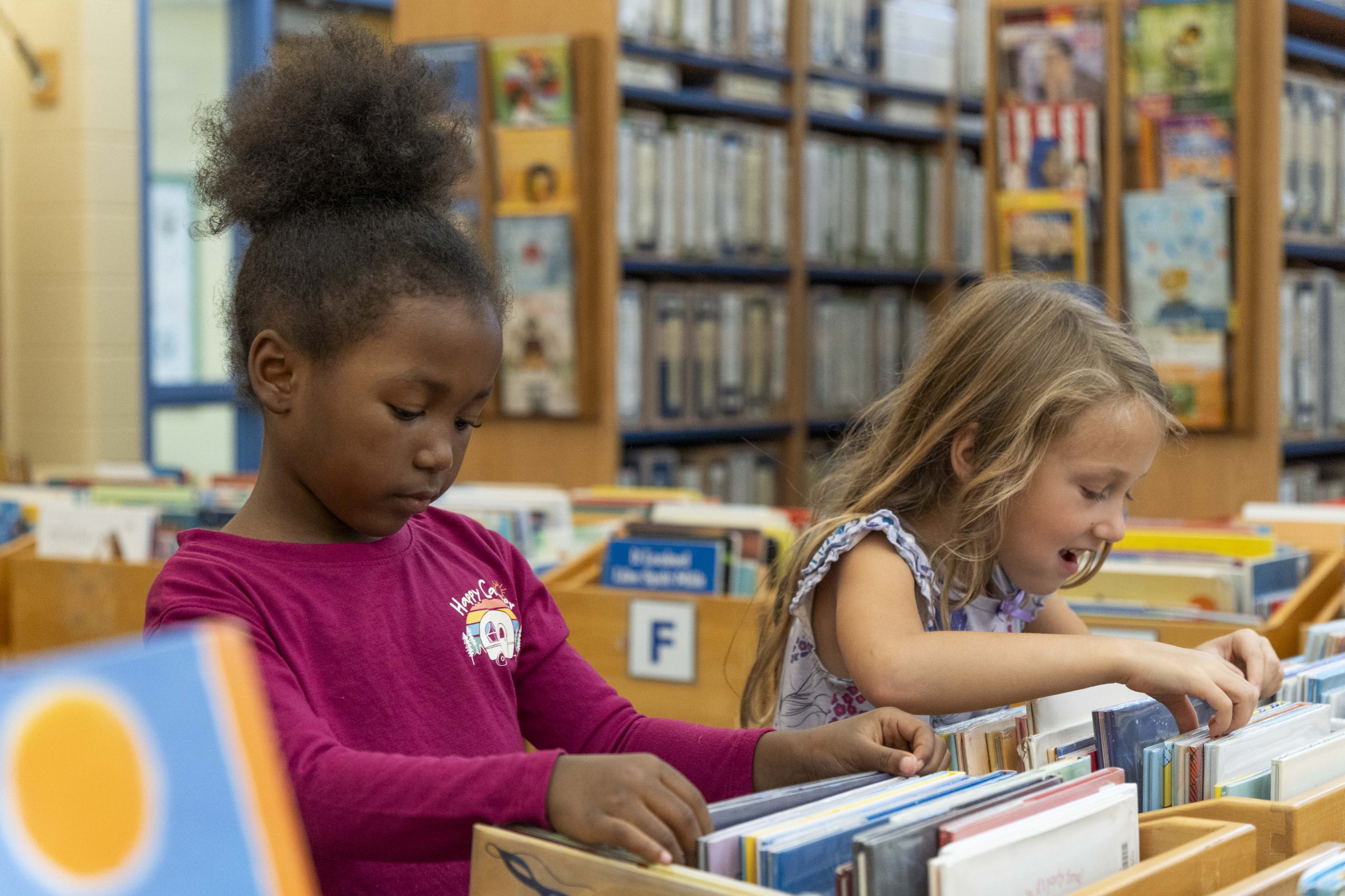 • K5 through sixth-grade students spend 60 minutes in the library every week.