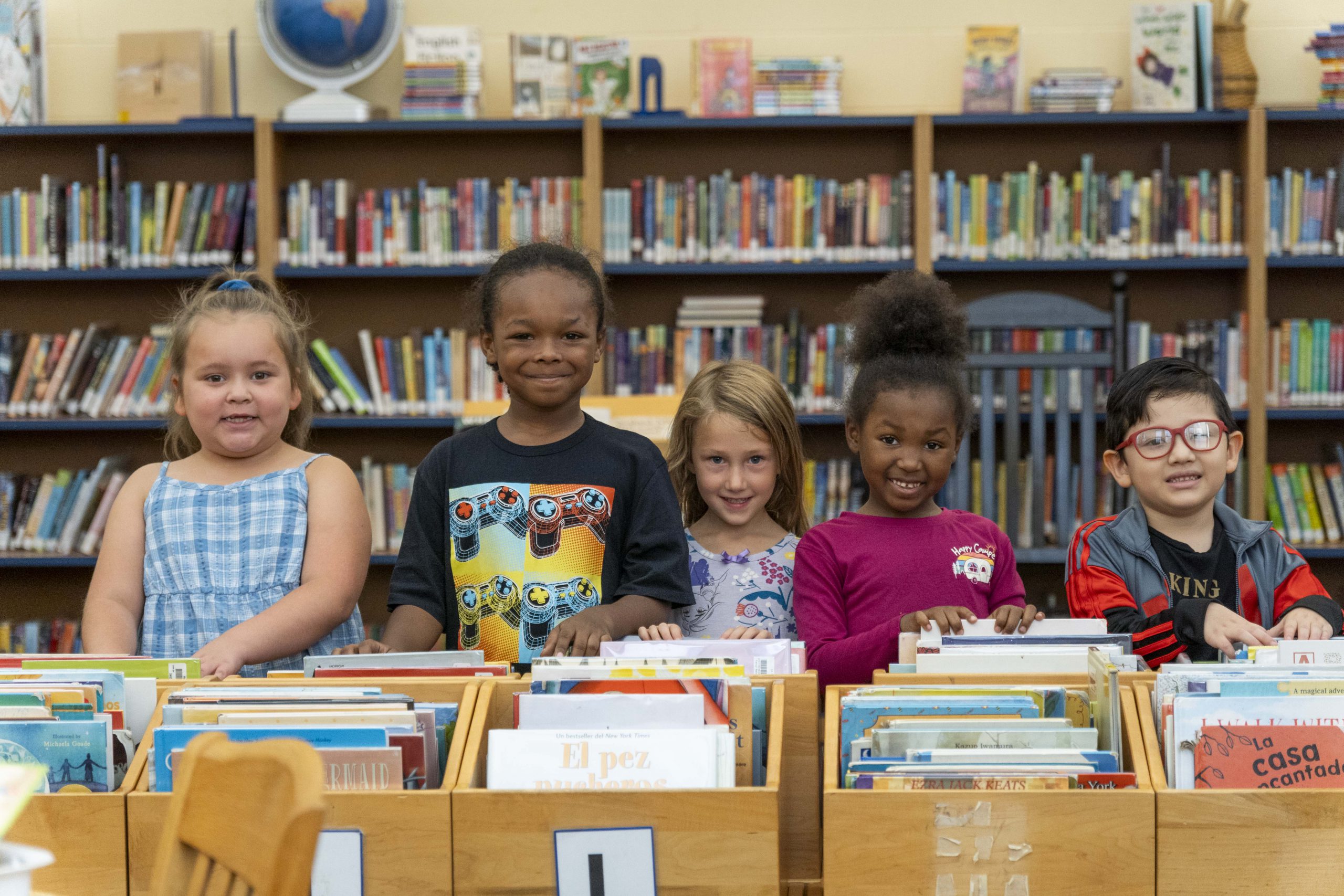 Our bilingual library media specialist, Julie Kersting, curates this remarkable collection and hosts weekly library classes for all grades.