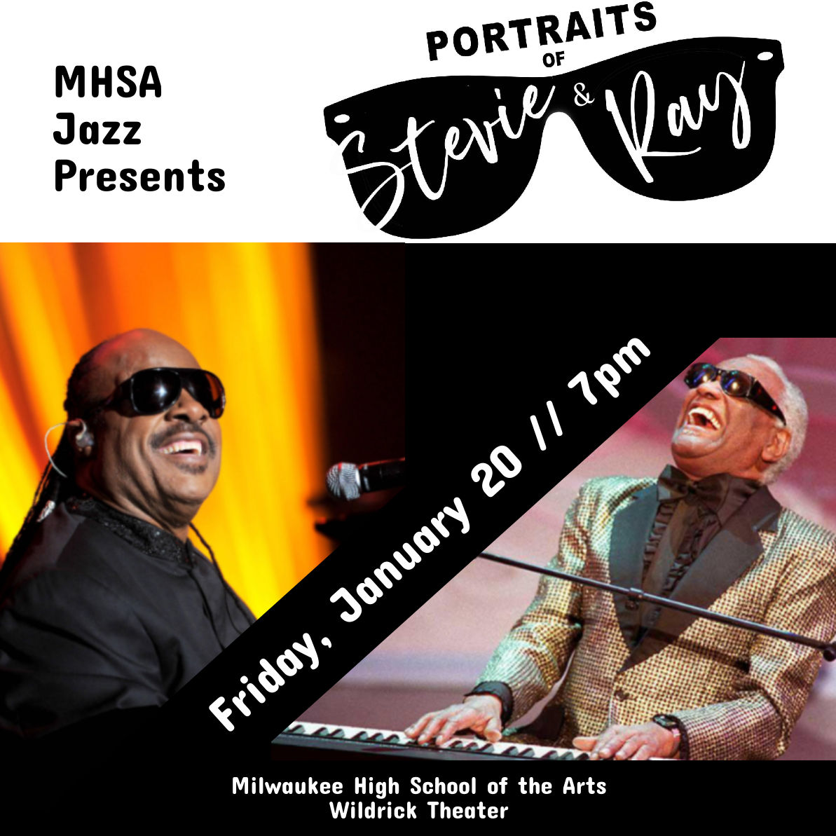 The greatest hits of Stevie Wonder and Ray Charles spotlighted on the main stage at Milwaukee High School of the Arts. Watch MHSA’s fine jazz musicians pay homage to two of the greatest that ever lived in this ONE NIGHT ONLY extravaganza!