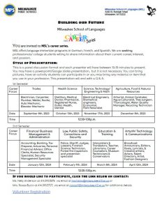 MSL offers language immersion programs in German, French, and Spanish. We are seeking professionals/ college students willing to share information about their current career, interest, and passion.
